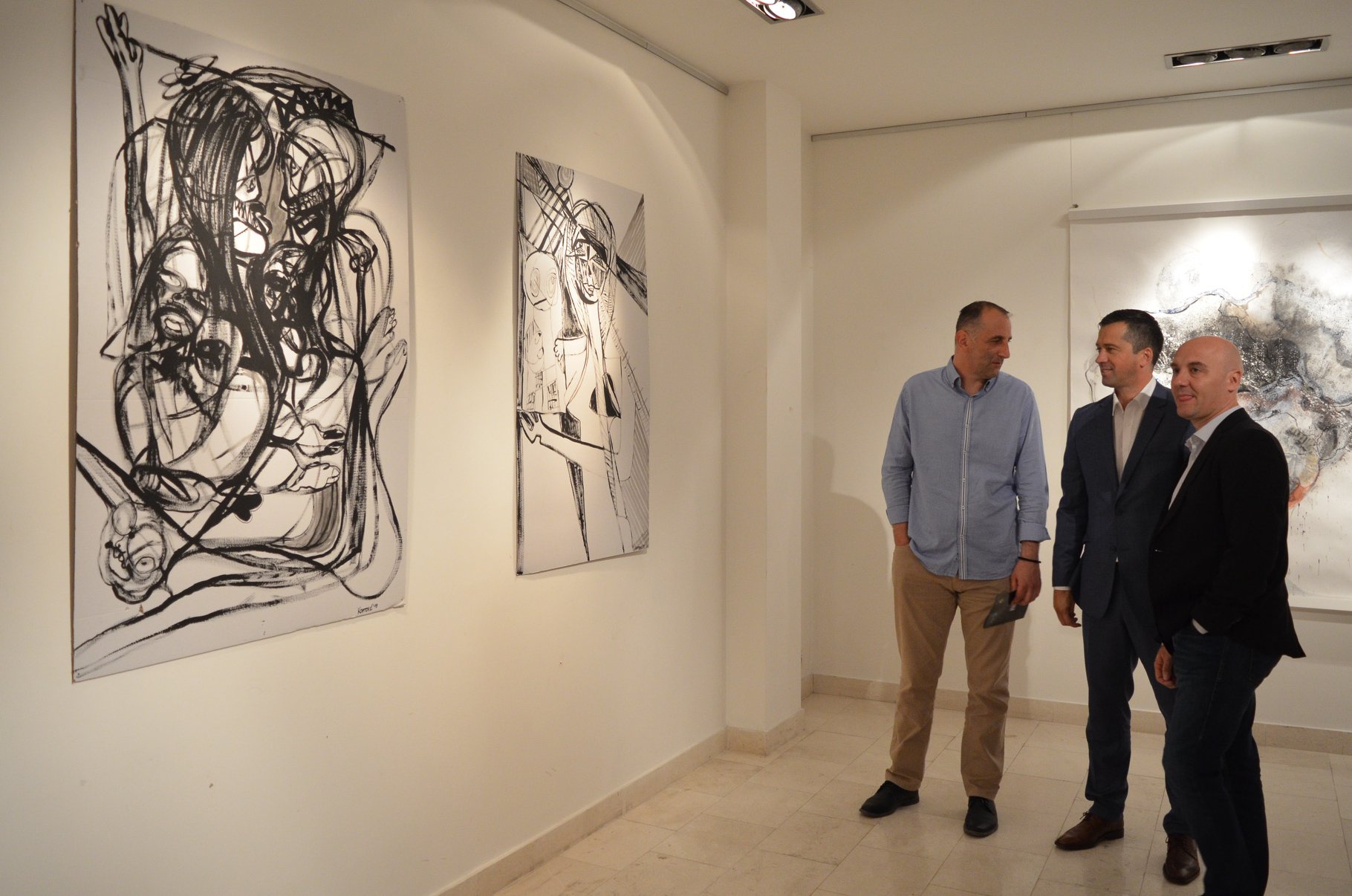 Izložbu je svečano otvorio naš poznati književnik Balša Brković. “Čini mi se da je ovakva izložba, koju imamo priliku da vidimo ovdje večeras upravo lijep nagovještaj tog traga, segment u kom će ići likovni izražaj. Imamo dva zaista zanimljiva i značajna umjetnika Anju Radulović i Veljka Kopitovića koji iz onako različitih pozicija ulaze u svoju umjetničku avanturu u svoju igru odgonetanja svijeta, i dok kod Anje vidimo kao polaznu tačku pejzaž iz koga ona osvaja jednu osobenu i vrlo ličnu ekstazu, jer taj crtež napušta namjeru pejzaža i širi se u nešto što postaje veće od stvarnosti same, ja to doživljavam kao jednu ekstazu crteža. Sa druge strane kod Kopitovića vidimo potrebu da se u odgonetanje svijeta krene iz jedne tačke sa spektrom popkulturalnih impulsa nečega što vuče ka onom ugrupanom polu ali jednaku nelagodu, jednaku crtačku snagu vidimo i u njegovim radovima”, kazao je Brković o predstavljenim radovima.