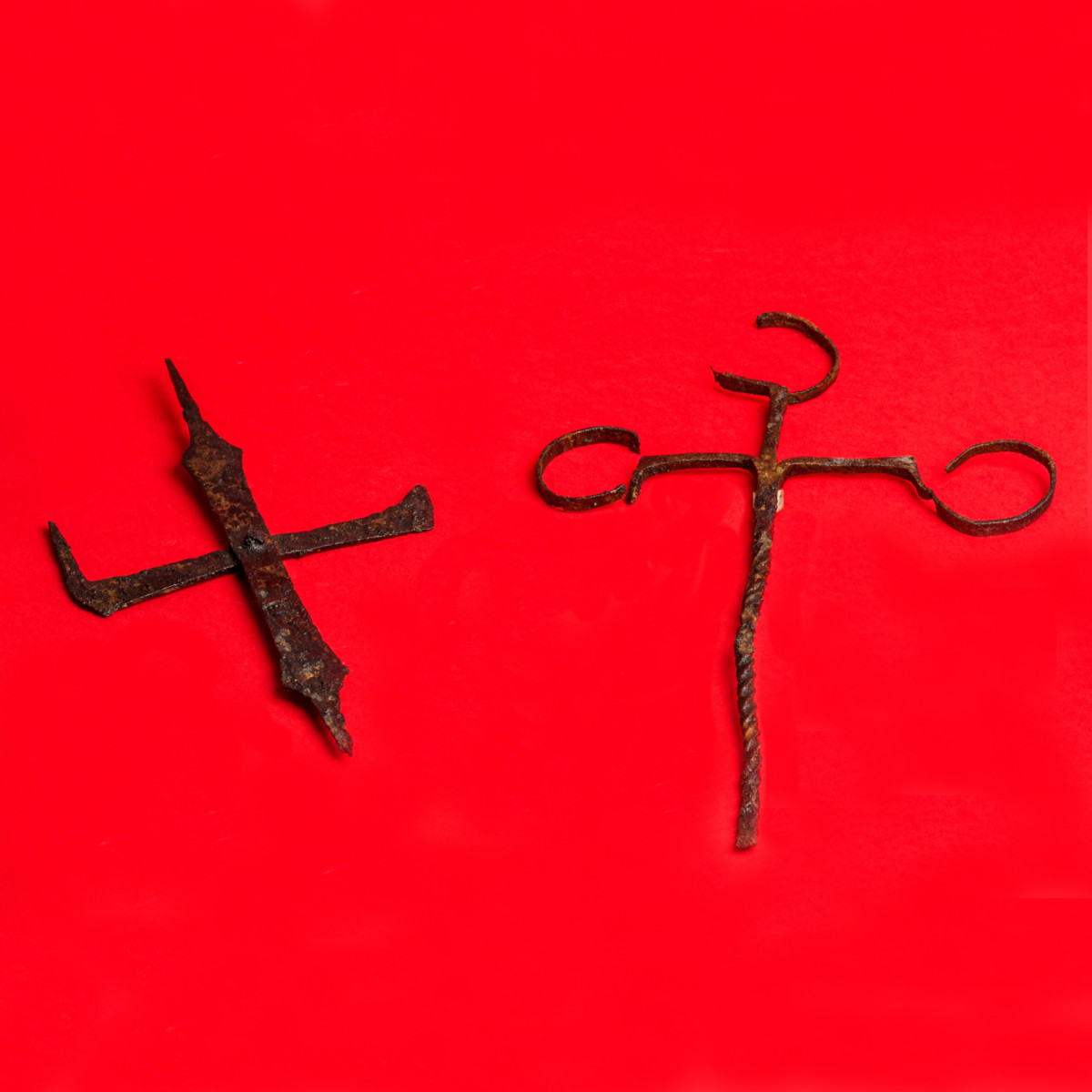 Vitrina 17Krstoliki metalni predmet (služio za nošenje kadionice), ekseri, držači za svijeće. Namastir u Košutićima (kod Andrijevice), 10-11. vijek.